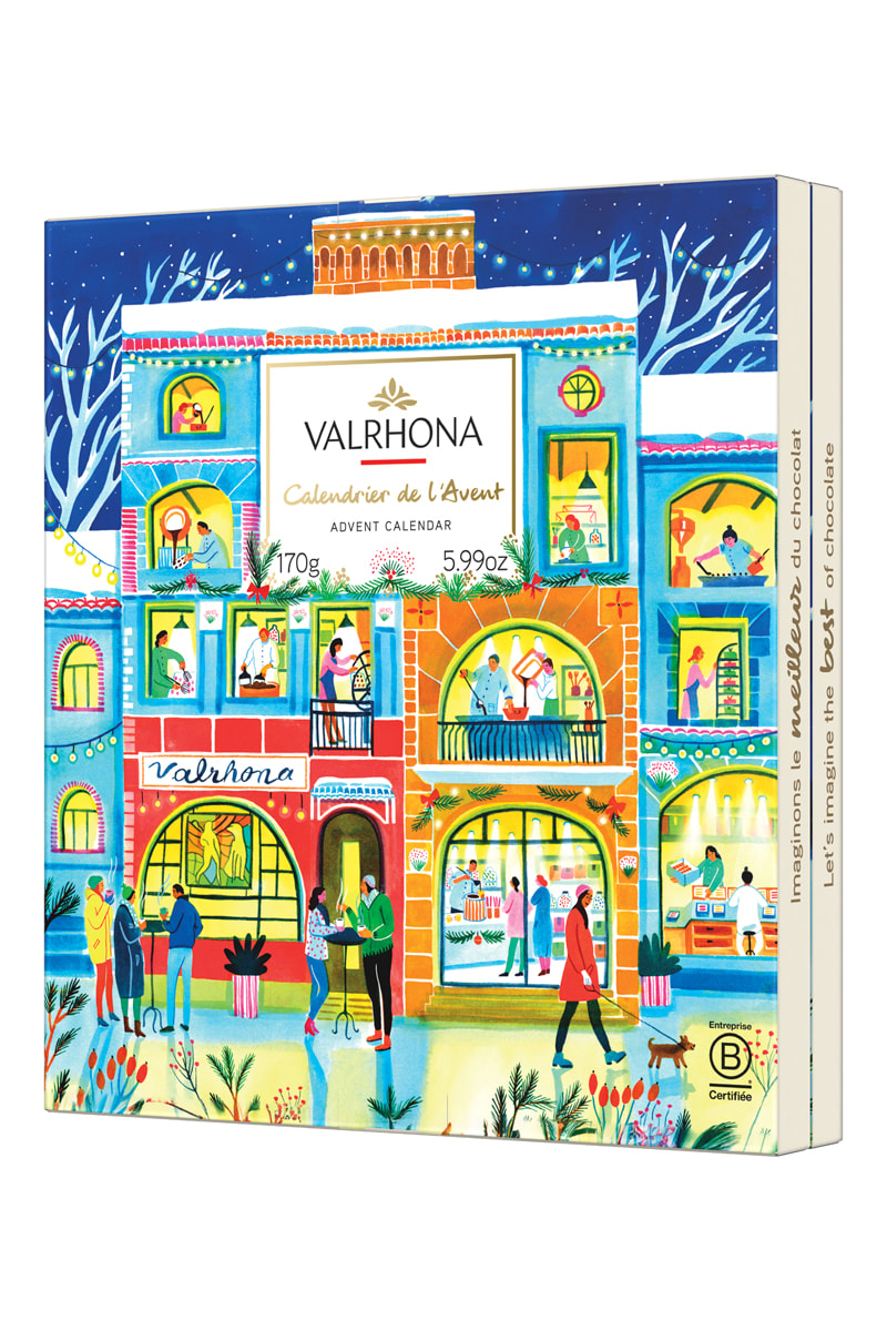 Découvrez le calendrier de l'avent Valrhona avec un assortiment de chocolats, equinoxes, croustibilles, carrés,...tout pour satisfaire petits et grands.