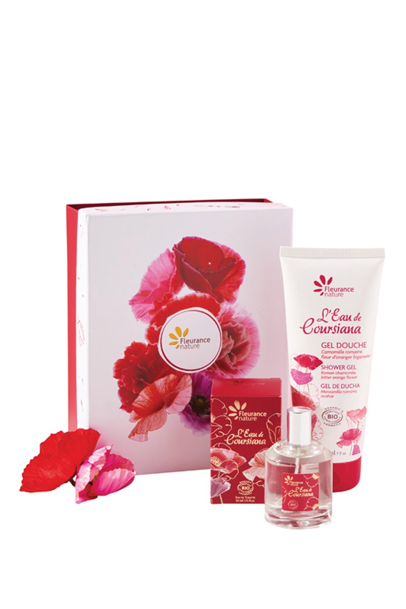 Parfum l'Eau de Coursiana : alcohol, aqua, parfum, benzyl alcohol, citral, eugenol, benzyl salicylate, cinnamal, geraniol, farnesol, linalool, benzyl benzoate, limonene.
