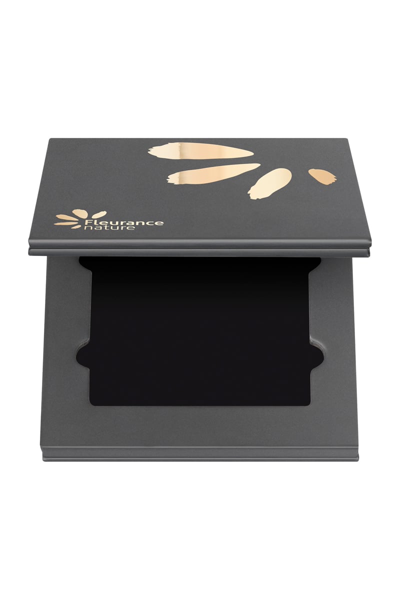 Cette palette aimantée en carton possède un miroir. Elle peut accueillir au choix 4 recharges d’ombres à paupières OU 2 recharges de fards à joues OU 2 recharges d’ombres à paupières et 1 recharge de fard à joues Fleurance Nature.
