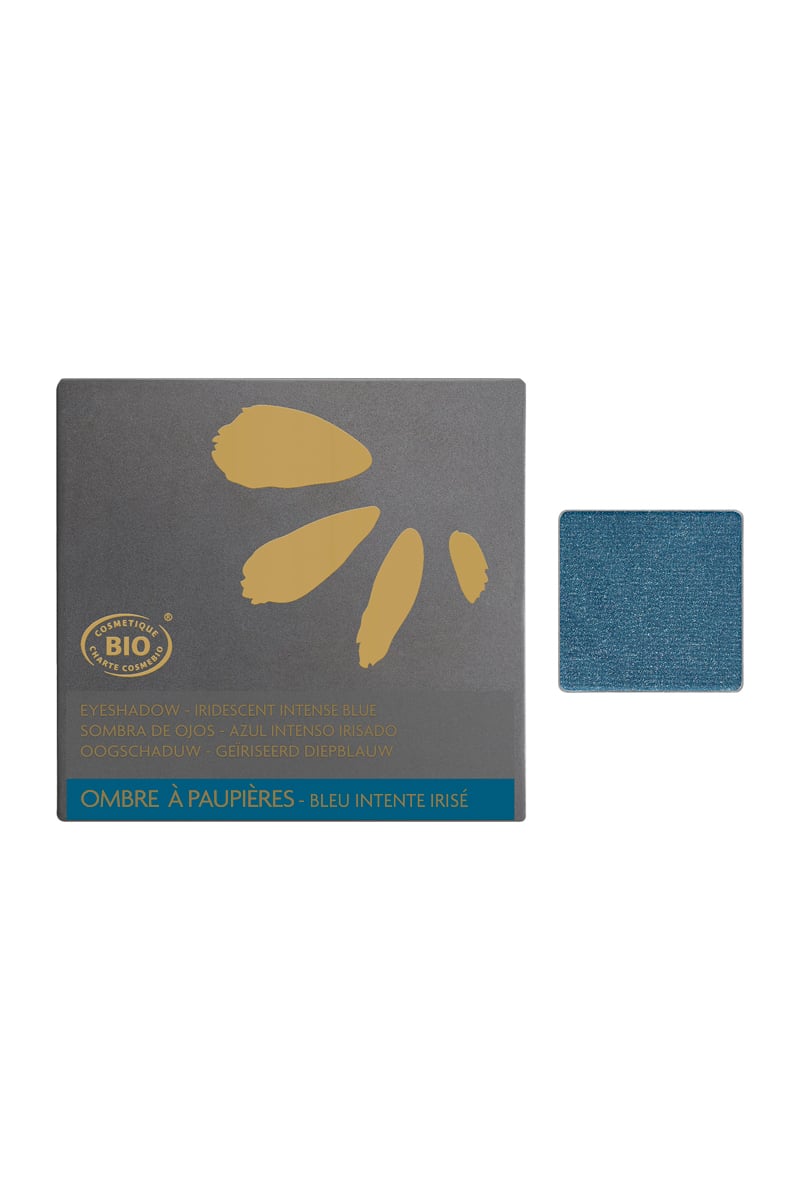 L’ombre à paupières Bleu intense au fini irisé est idéal pour un maquillage élégant et prononcé des yeux.