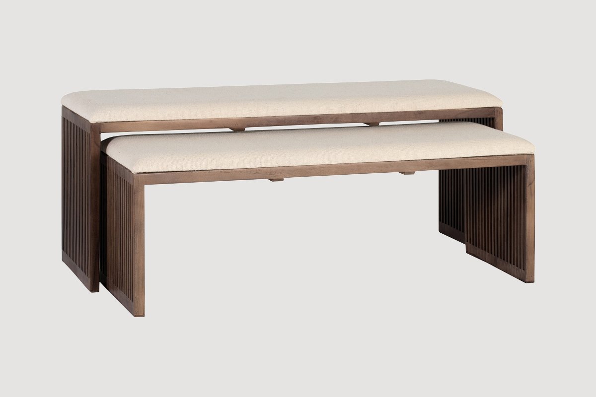 2 bancs en teck - 114 x 45 x 34/105 x 36 x 34 cm