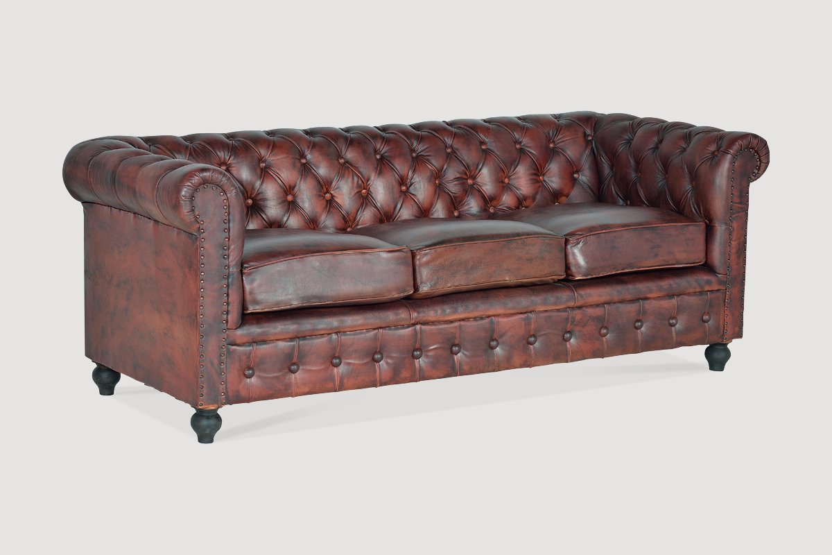 Canapé 3 places en cuir vieilli.