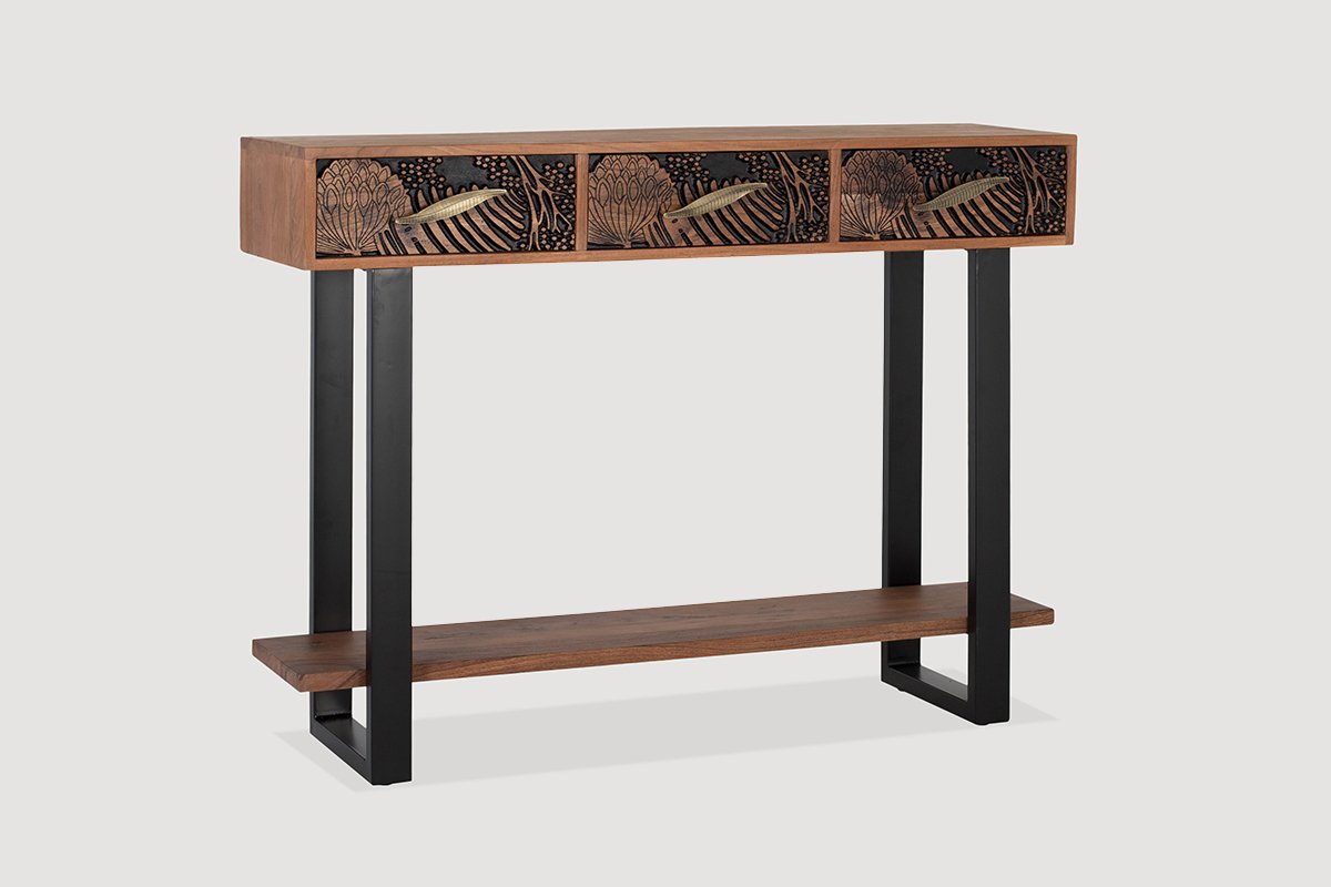 Console 3 tiroirs - Naturel et noir
