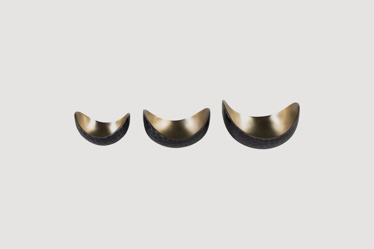 3 bols décoratifs - 17/14/12 cm - Noir et doré