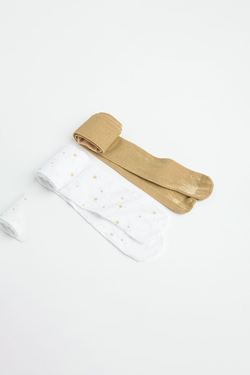 2 collants - Blanc et beige