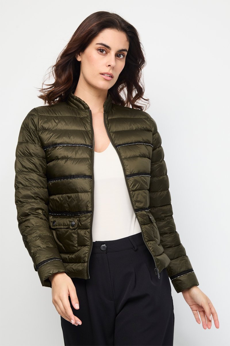 Empiècements contrastants et en métal sur les manches, devant et au dos.