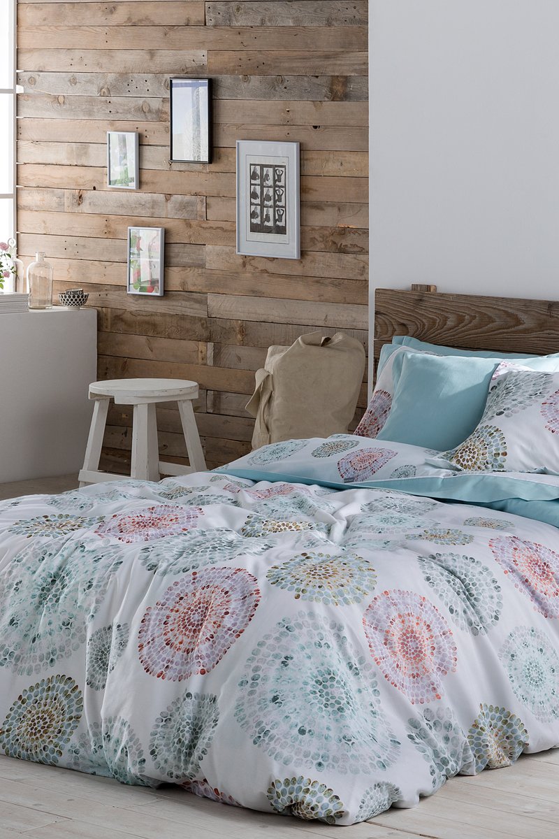 Housse de couette en coton 57 fils/cm² Lundy - Vert d'eau et fuchsia