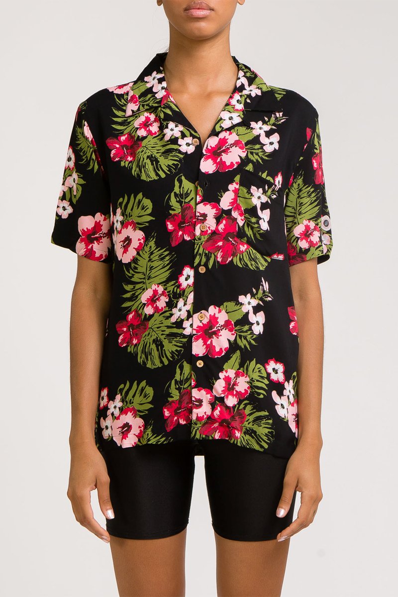 Chemisier Aloha Shirt - Noir et rose