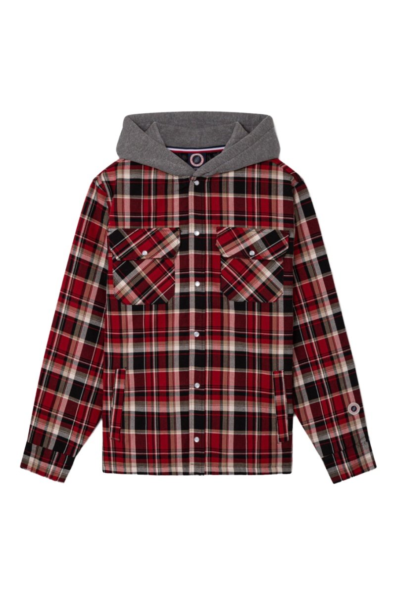 Surchemise à capuche Overshirt - Gris foncé et rouge