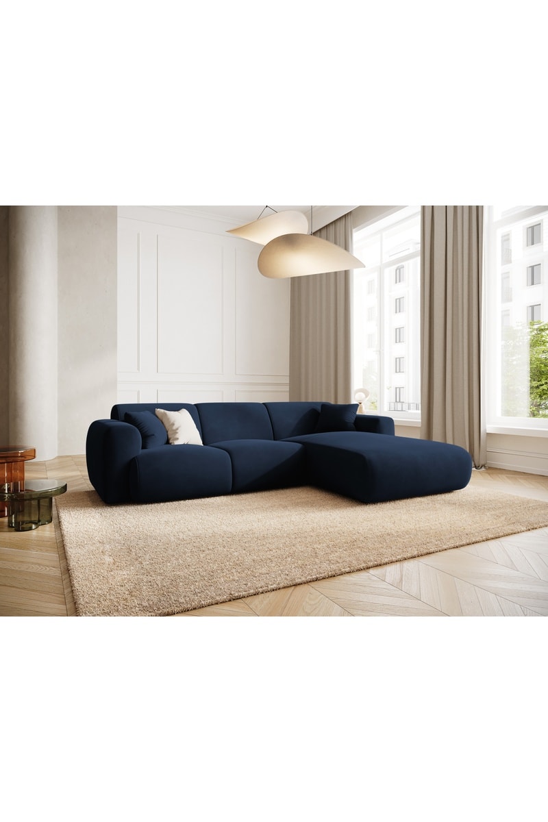 Canapé d’angle droit Theo - Bleu roi - 4 places - En tissu velours