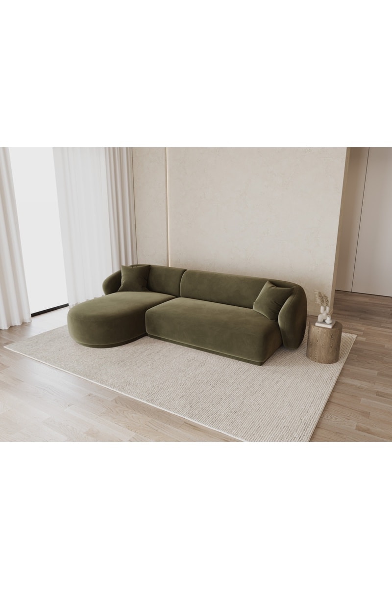 Canapé d’angle gauche Jane - Vert olive - 4 places - Toucher velours