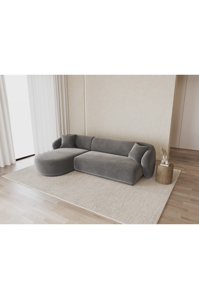 Canapé d’angle gauche Jane - Gris - 4 places - Toucher velours