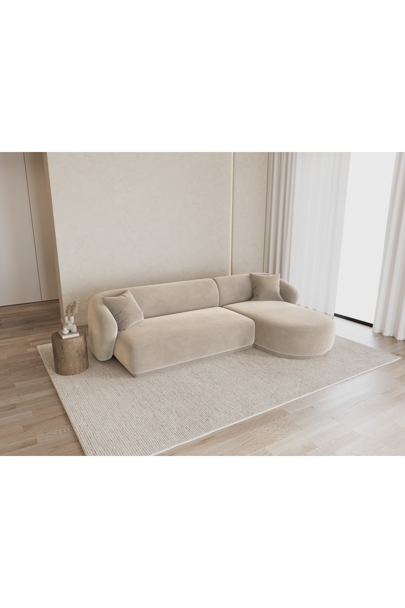 Canapé d’angle droit Jane - Beige - 4 places - Toucher velours