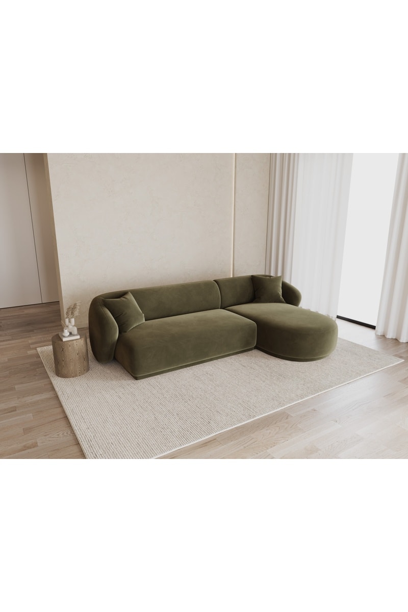 Canapé d’angle droit Jane - Vert olive - 4 places - Toucher velours