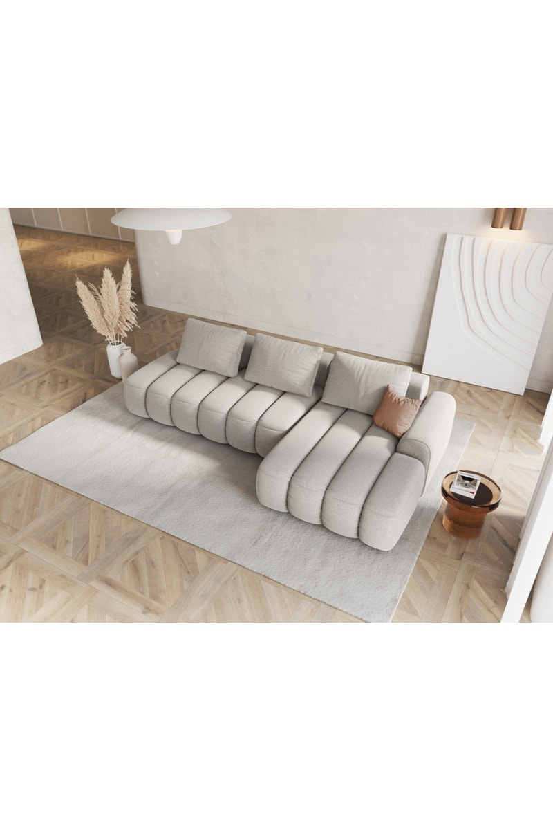 Canapé d'angle droit convertible Kimi - Beige - 4 places - En polyester