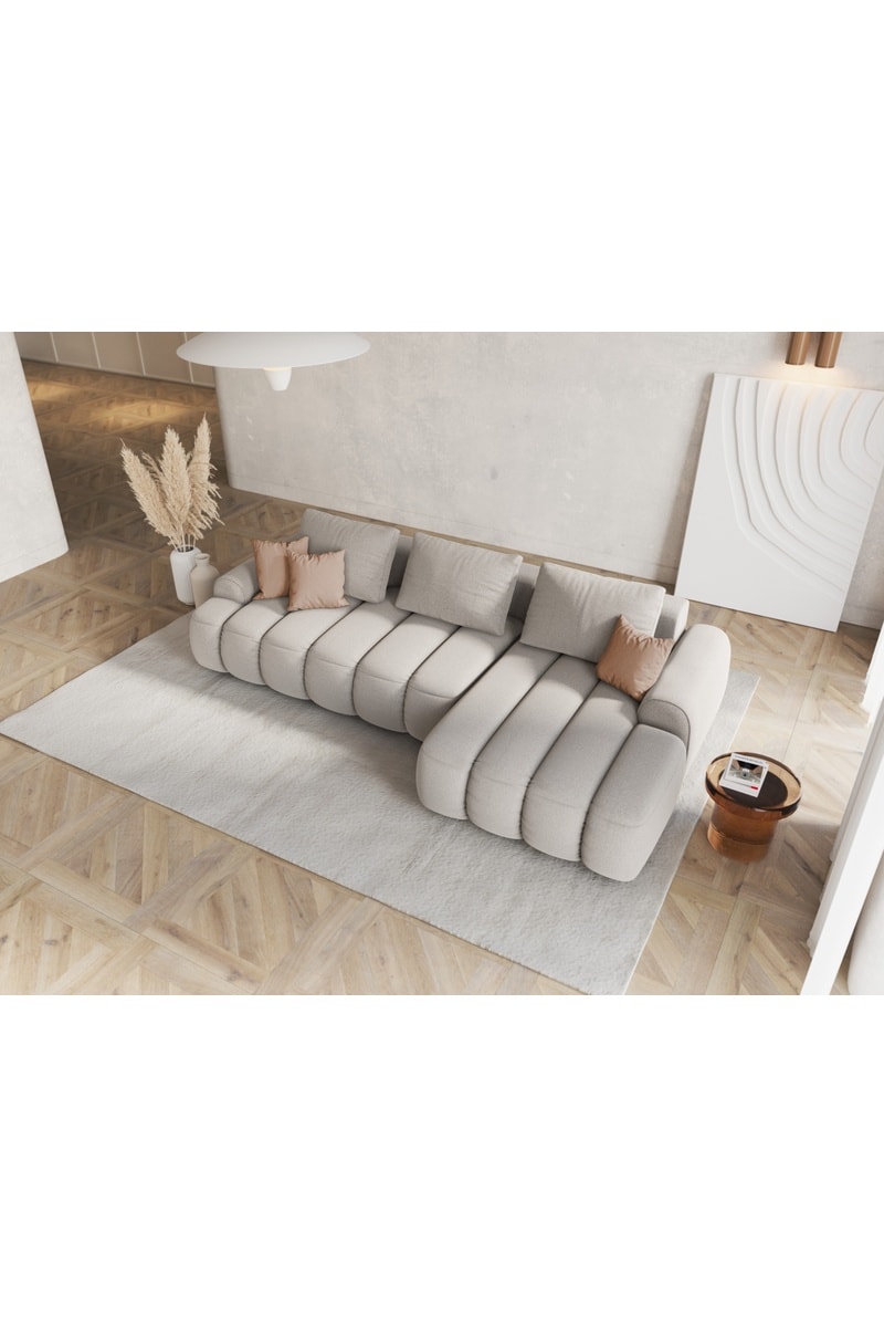 Canapé d'angle droit convertible Kimi - Beige - 3 places - En polyester