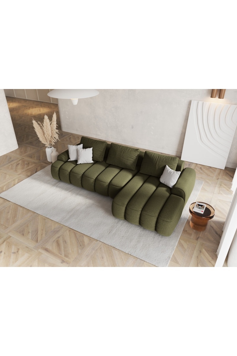 Canapé d'angle droit convertible Kimi - Vert - 3 places - En polyester