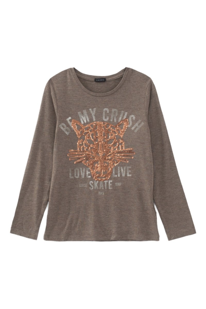 Lettrage, motifs tête de léopard à sequins et logo devant.