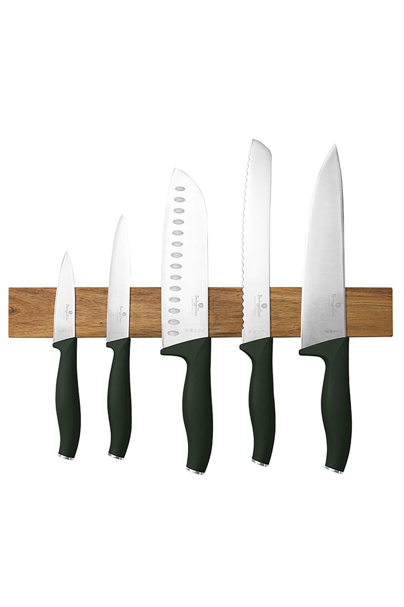 5 couteaux en acier inoxydable avec accroche magnétique en acacia