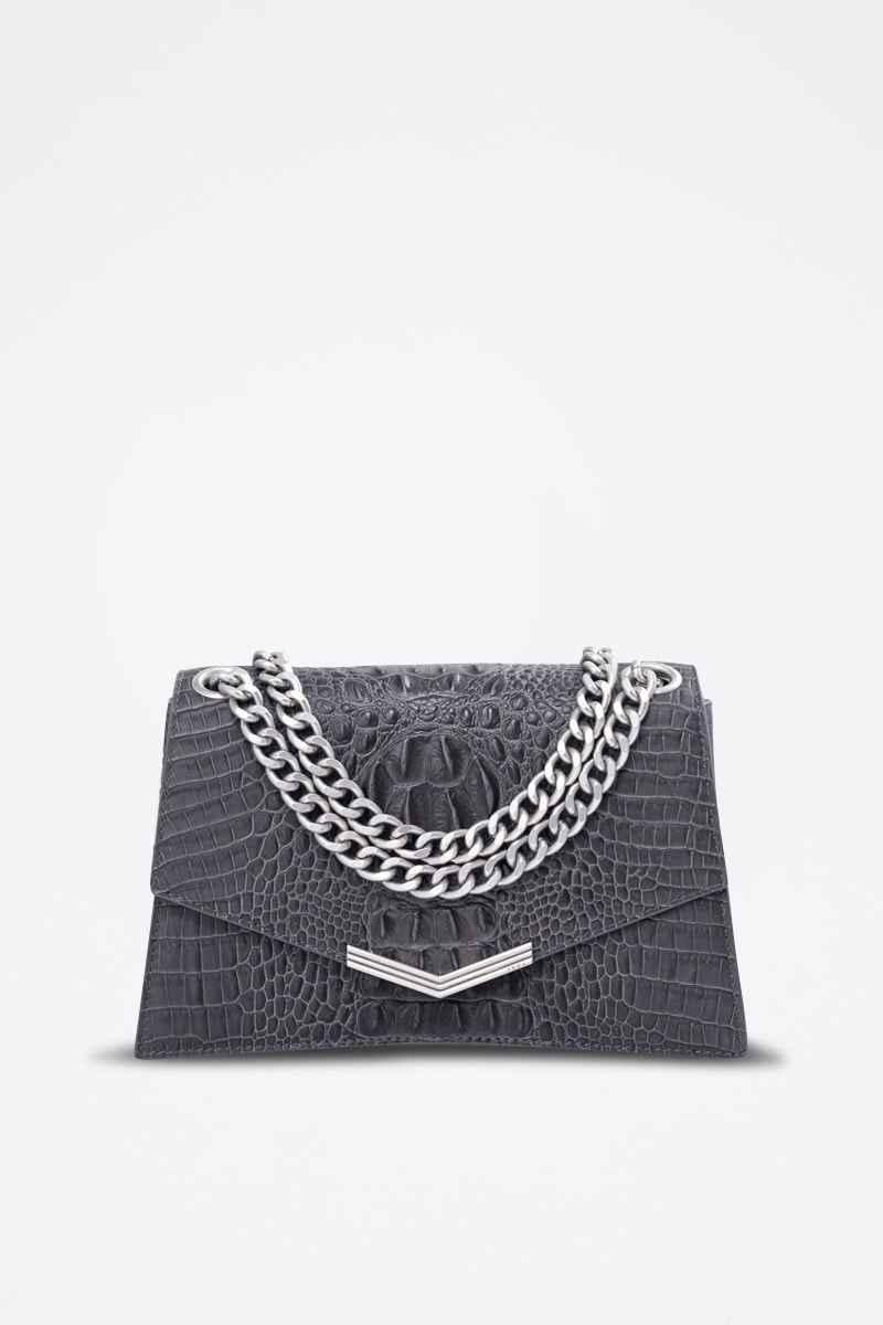 Sac porté épaule en cuir de veau - Anthracite - IKKS