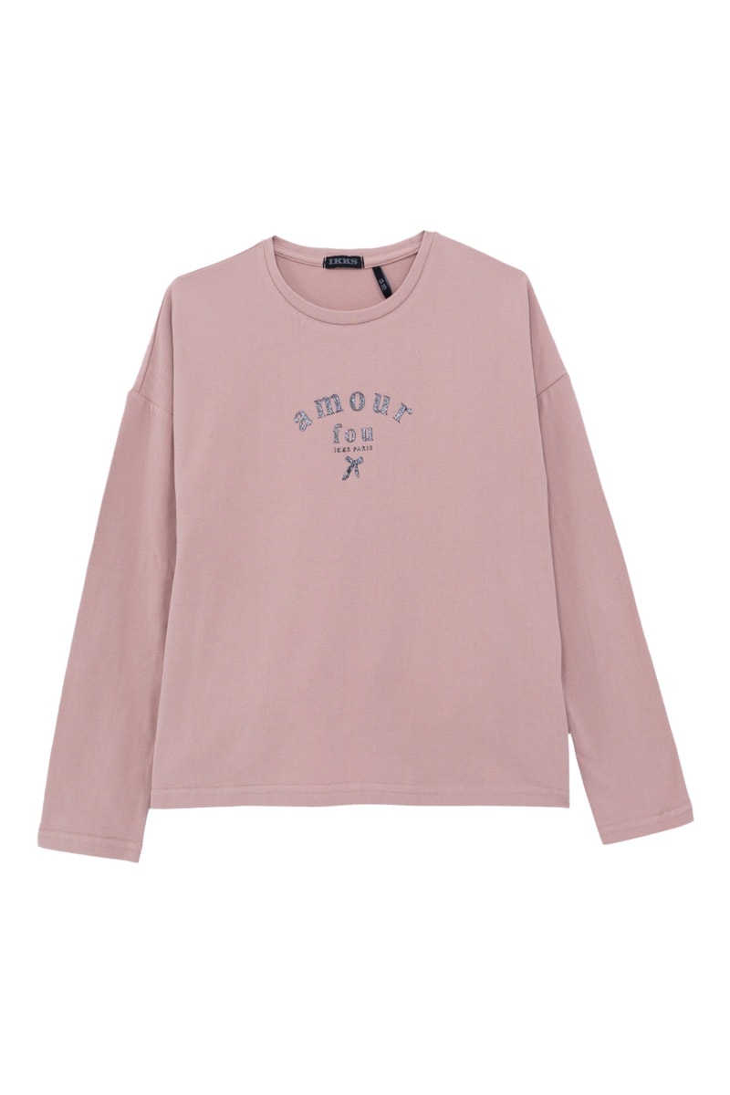 Lettrage, motifs fantaisie et logo pailletés devant.