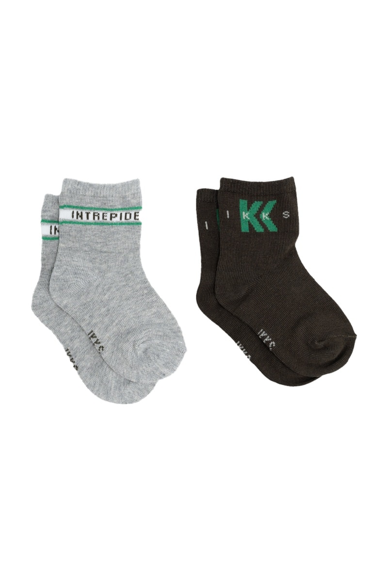 2 paires de chaussettes - Gris clair chiné et kaki foncé - IKKS