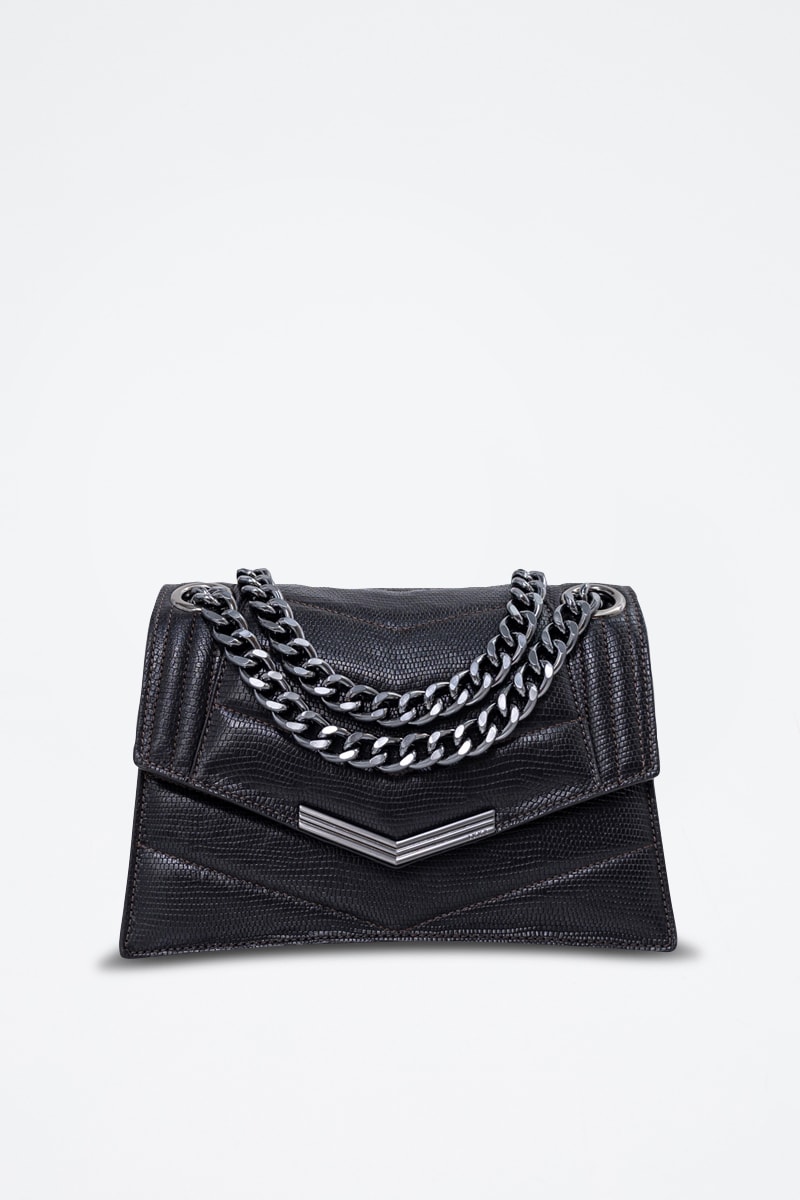 Sac porté épaule en cuir d'agneau - Noir - IKKS