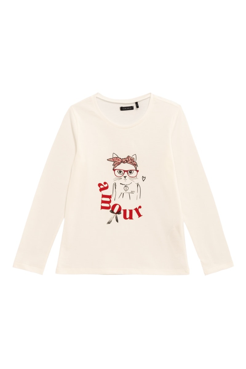 Lettrage, motifs fantaisie et logo pailletés devant. Empiècement en tulle au dos.
