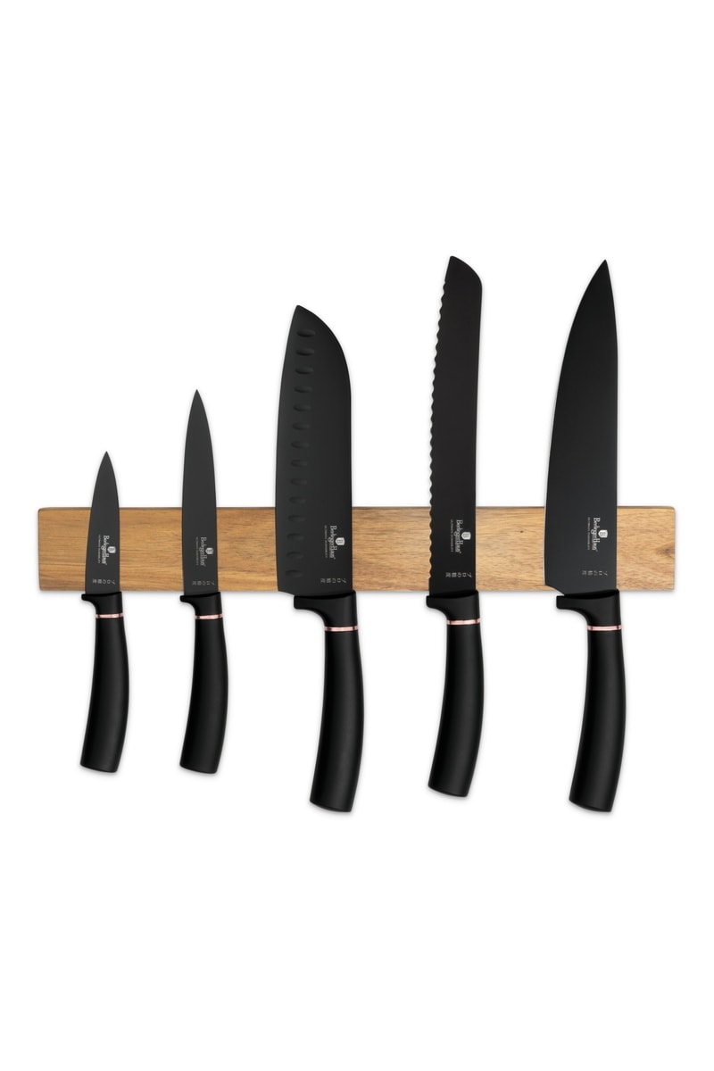 Bloc de 5 pièces en acier inoxydable et acacia Black Rose