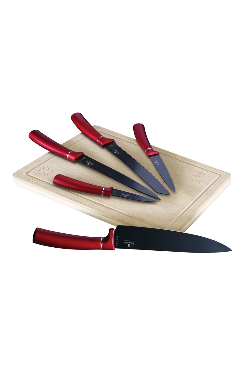 6 couteaux en acier inoxydable et planche à découper en bambou Metallic Line