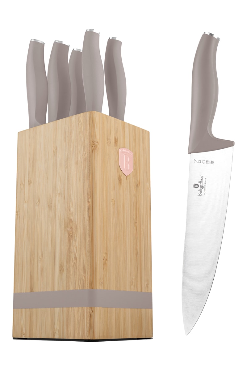 Bloc 5 pièces en acier inoxydable et bambou Taupe Collection