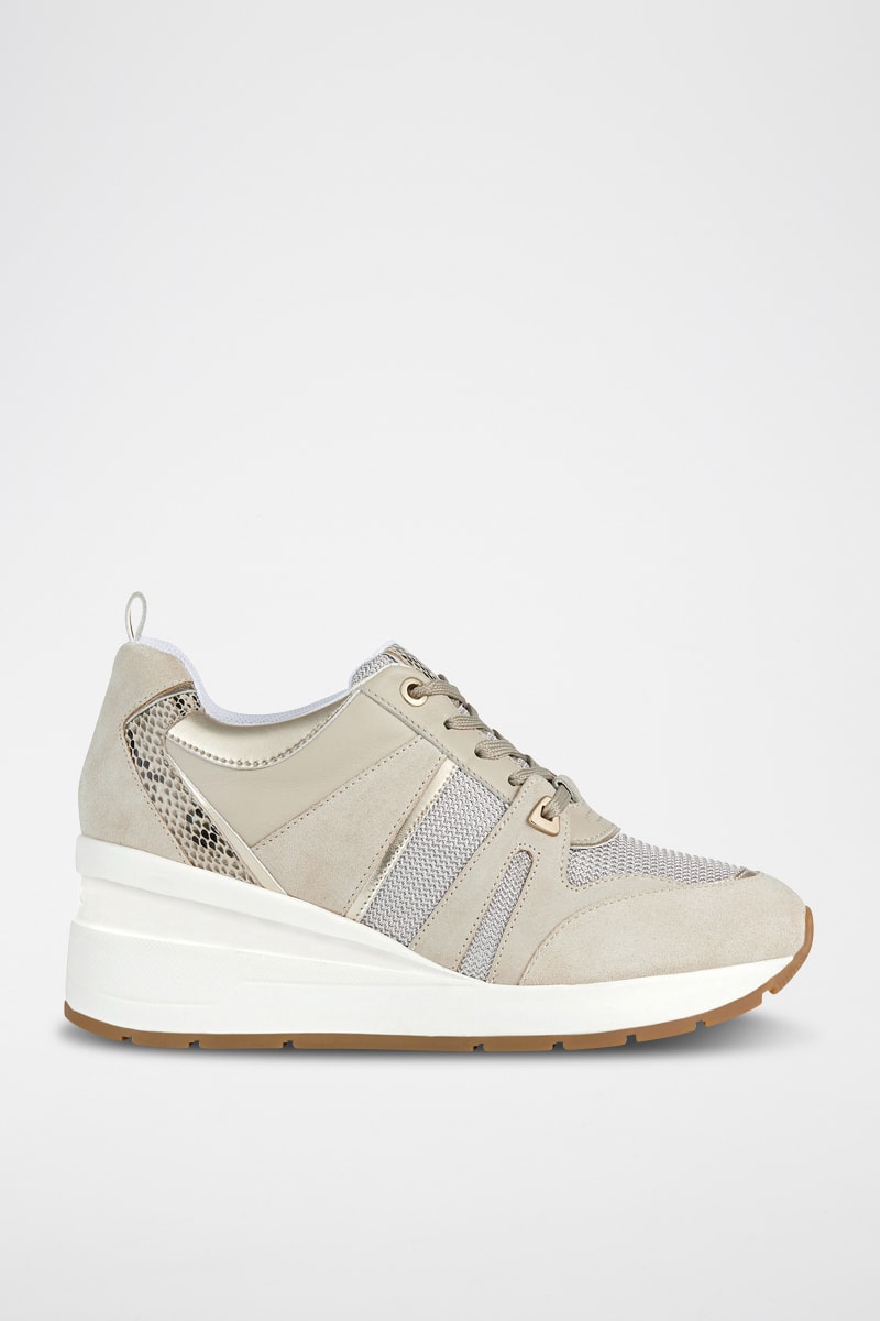 Baskets compensées en cuir Zosma - Taupe