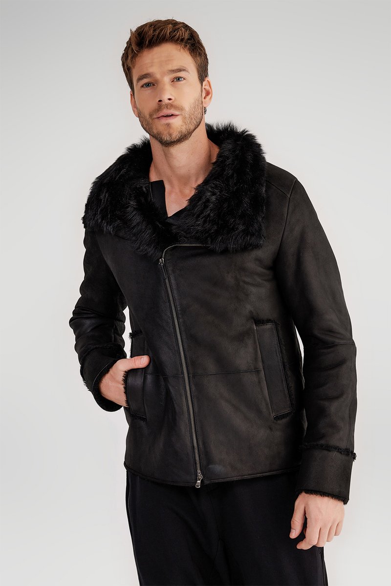 Manteau en peau lainée de mouton - Noir