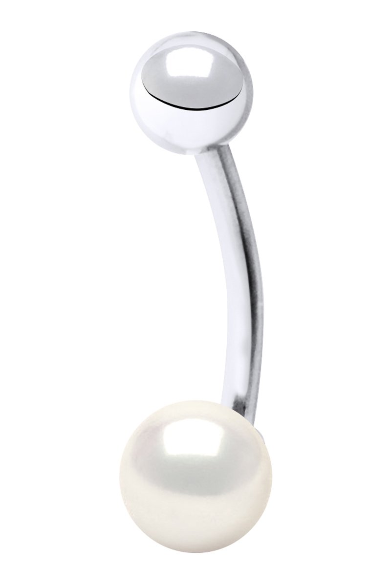 Piercing nombril en argent serti d'une perle de culture d'eau douce.