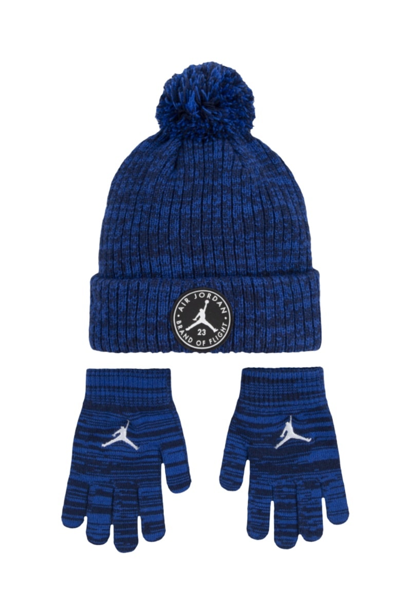 Bonnet à pompon et gants - Bleu nuit chiné