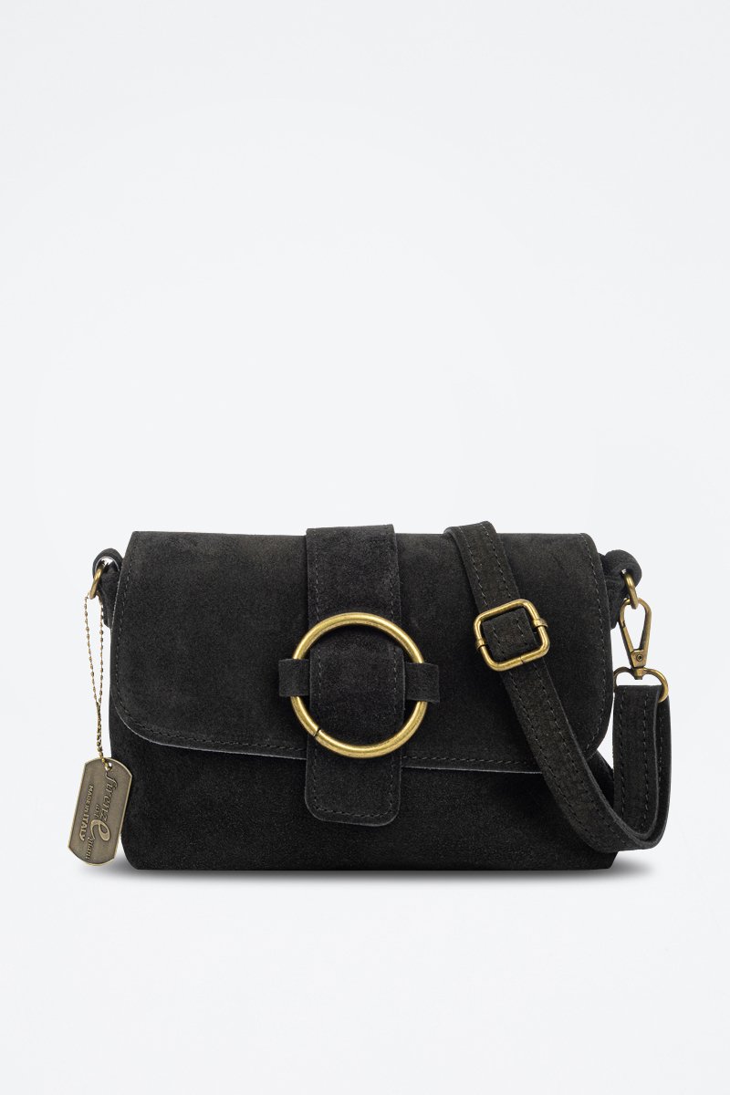 Sac bandoulière en nubuck Bagnone - Noir et doré