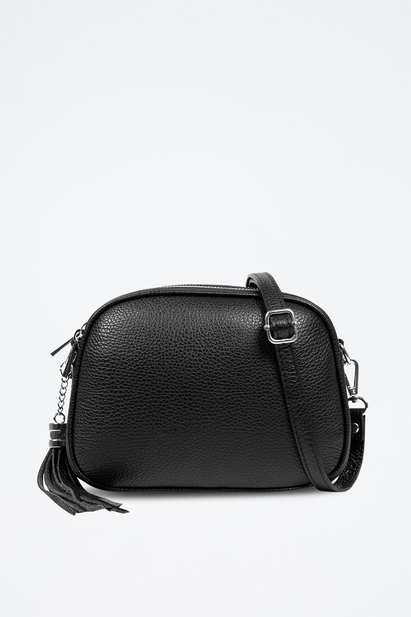 Sac bandoulière en cuir - Noir et argenté