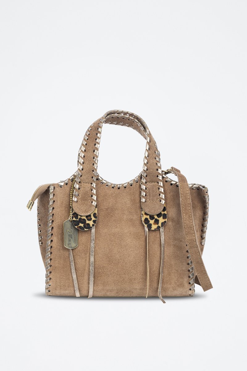 Sac à main en nubuck Avio - Noir, beige et argenté