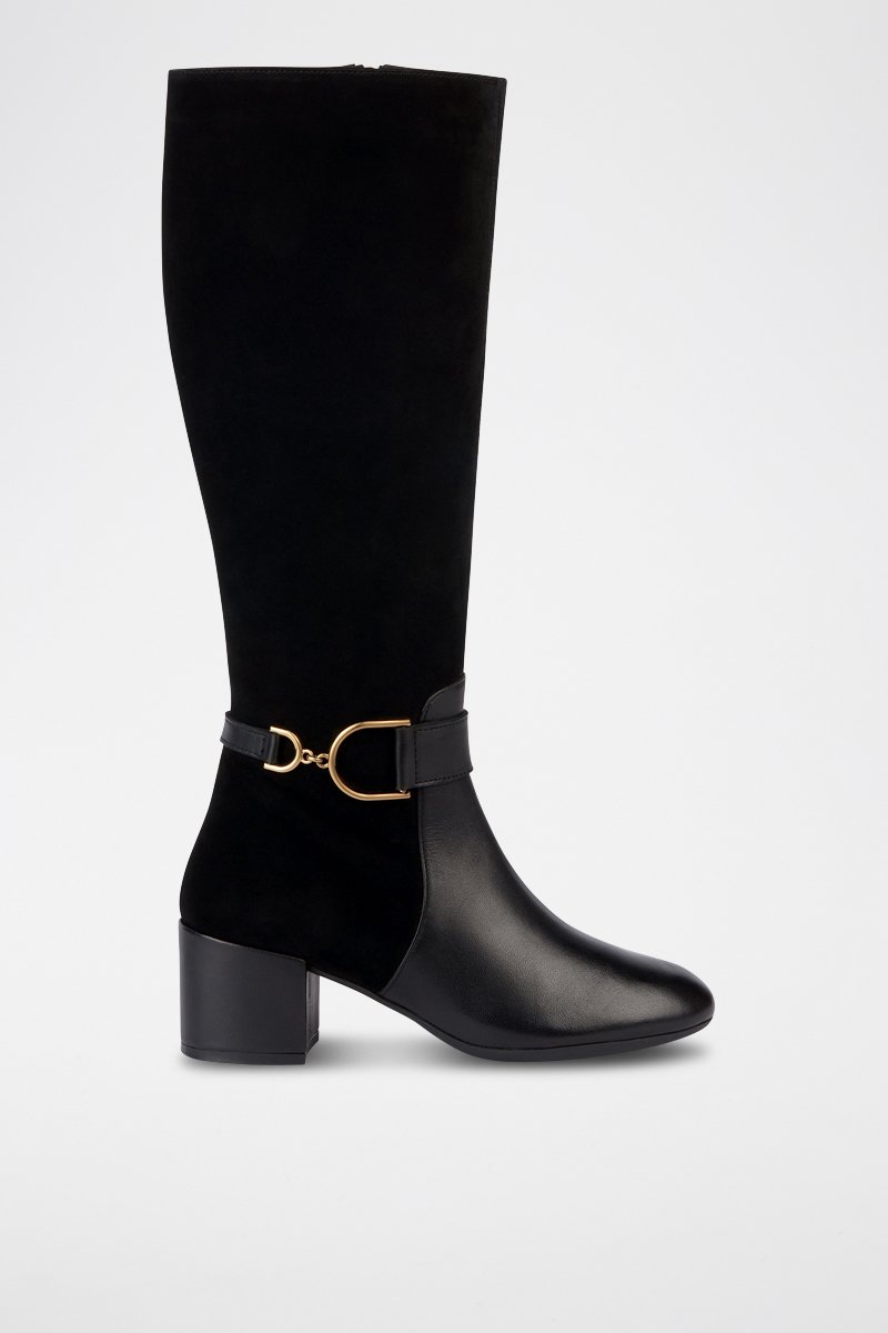 Bottes en cuir de chèvre nubuck et cuir de mouton nappa.