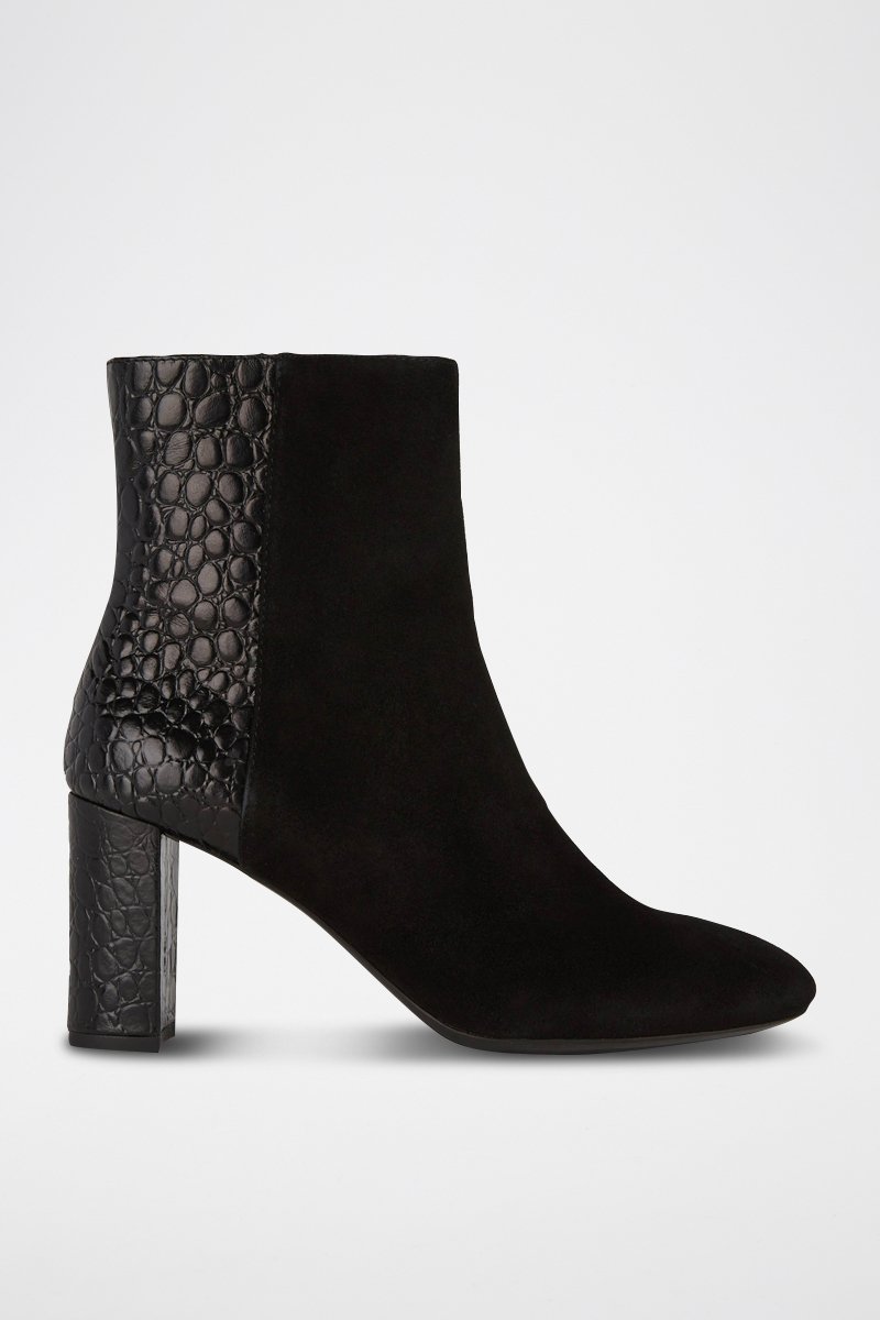 Bottines en cuir de chèvre nubuck et cuir nappa.