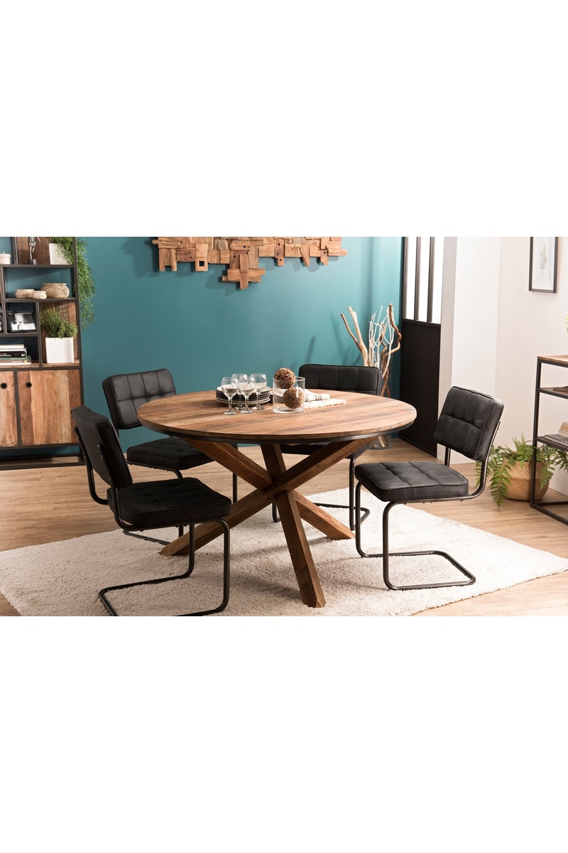 Table en teck recyclé, bois d'acacia et bois d'acajou recyclé.