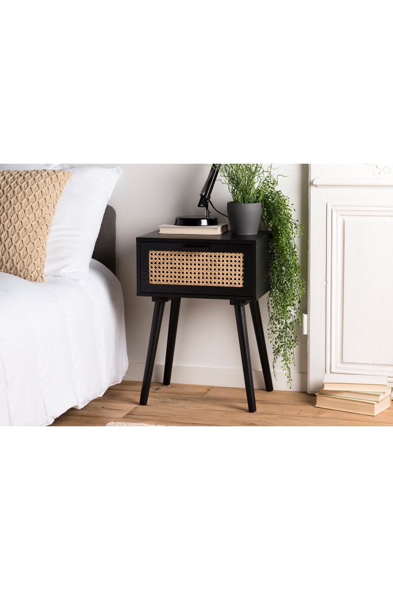 Table de chevet 1 tiroir - Noir et naturel