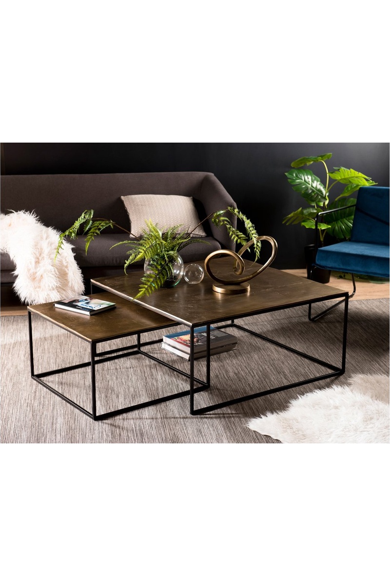 2 tables basses gigognes - Doré et noir