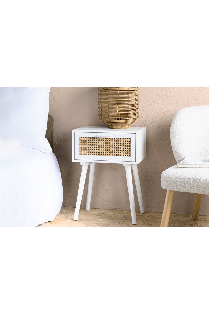 Table de chevet 1 tiroir - Blanc et imitation bois