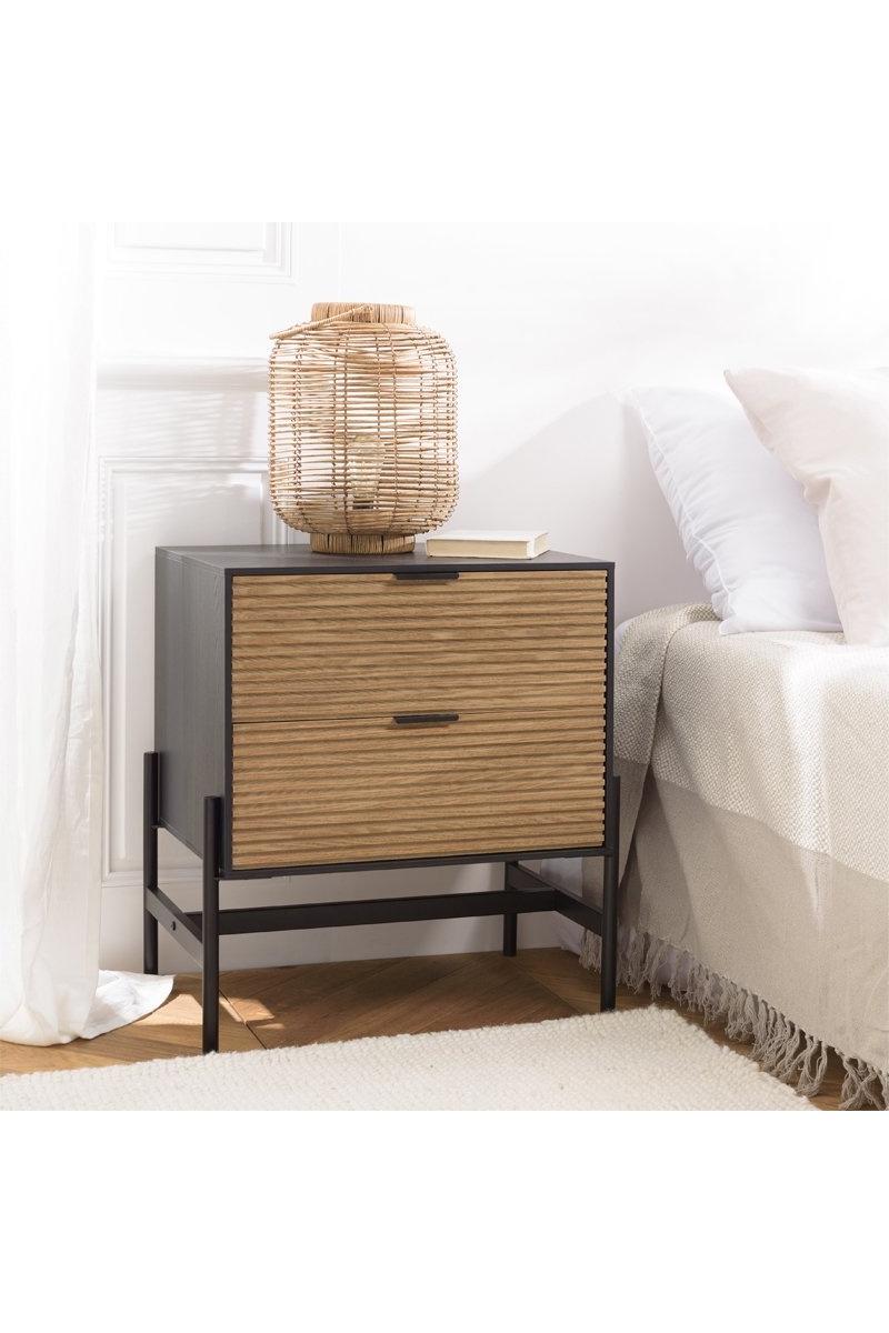 Table de chevet 2 tiroirs Charlie - Naturel et noir