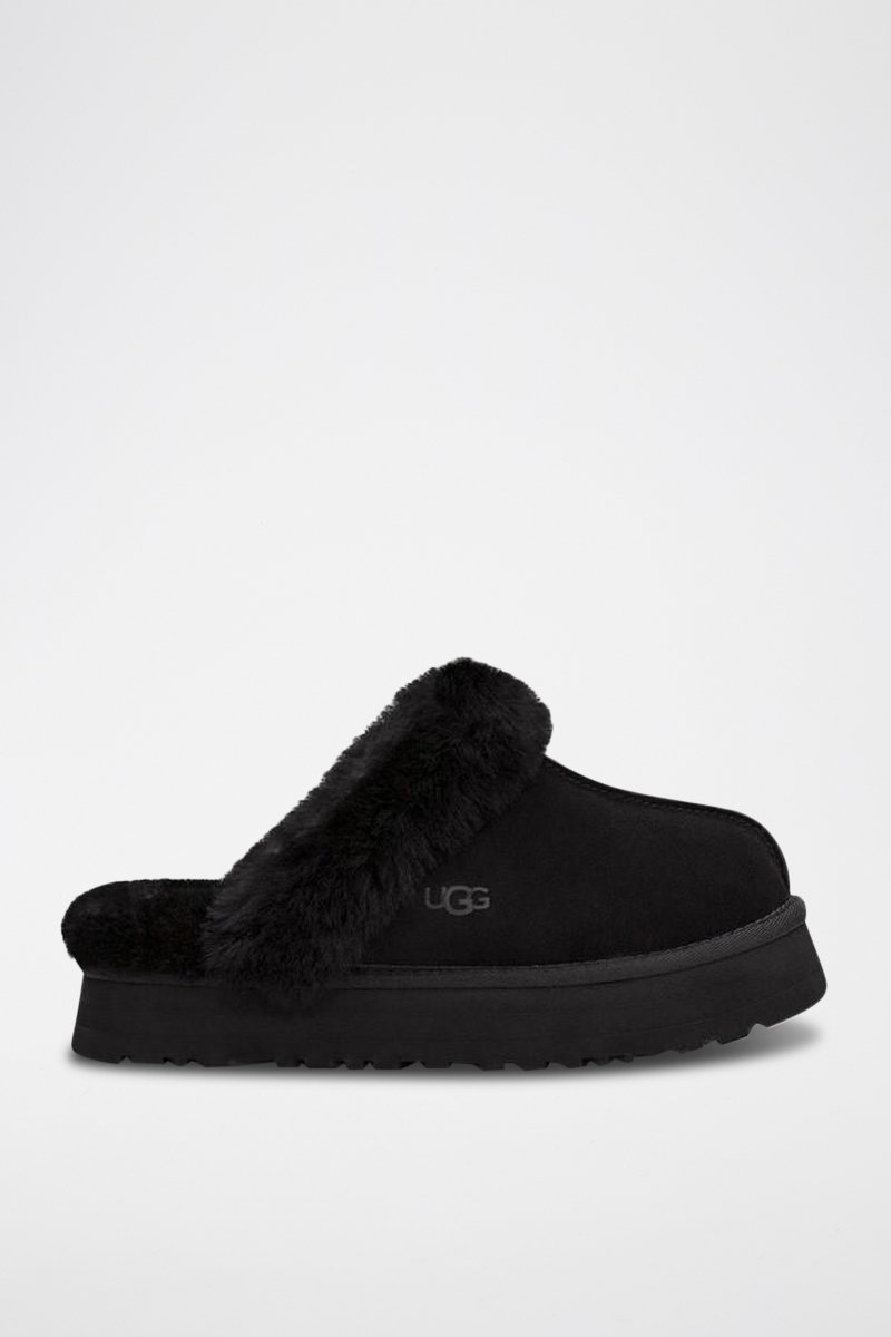 Pantoufles fourrées plateformes en nubuck Disquette - Noir