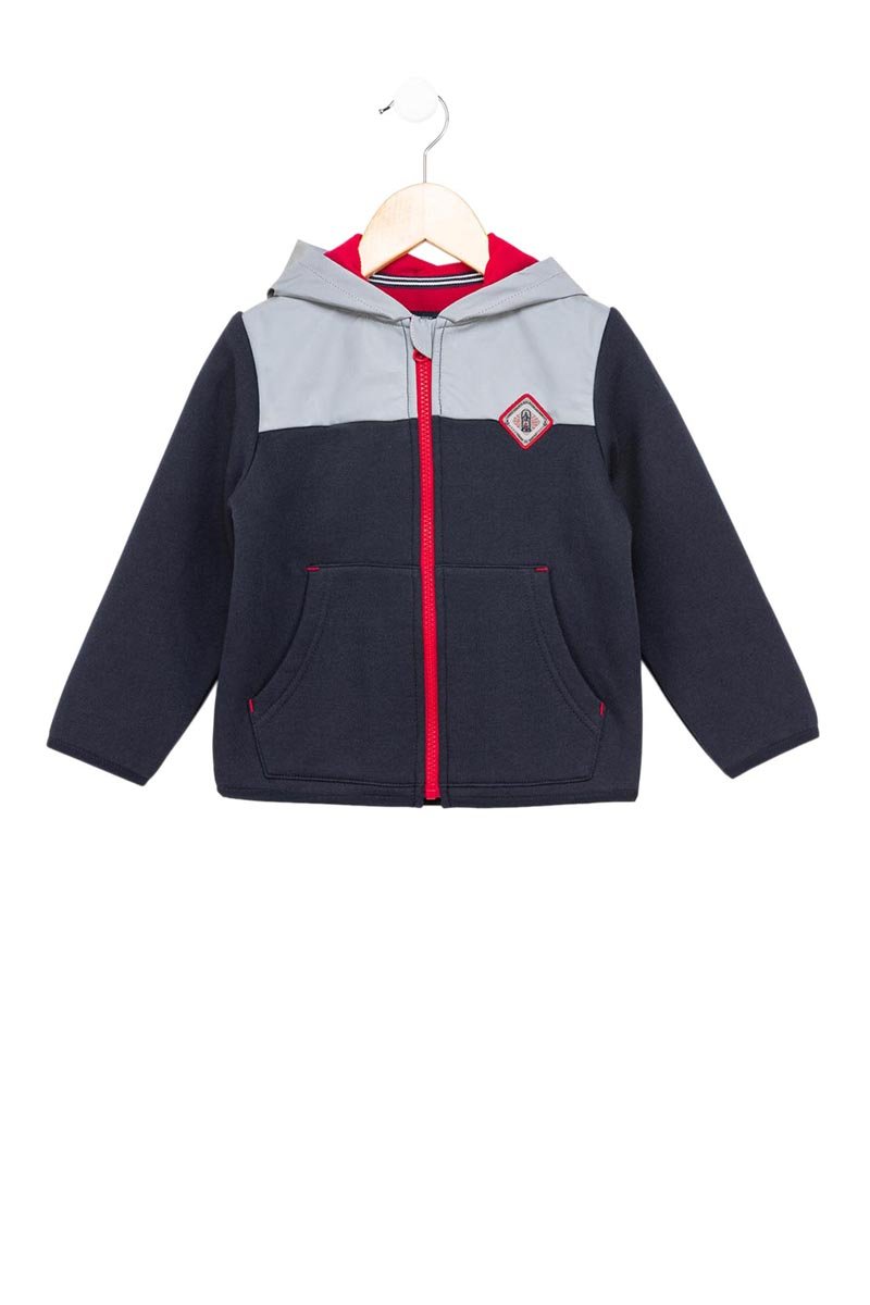 Coloris : bleu marine, gris et rouge