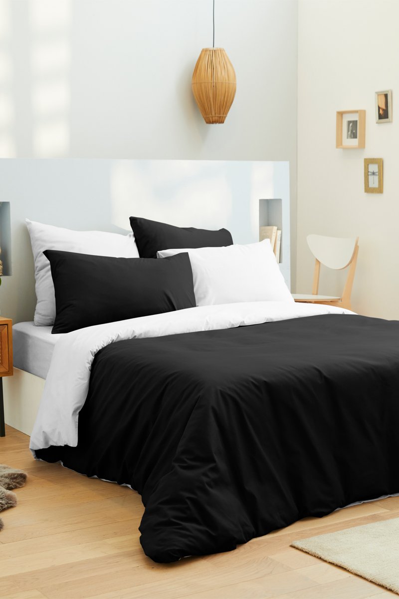 Parure de couette en coton 57 fils/cm² - Noir et blanc