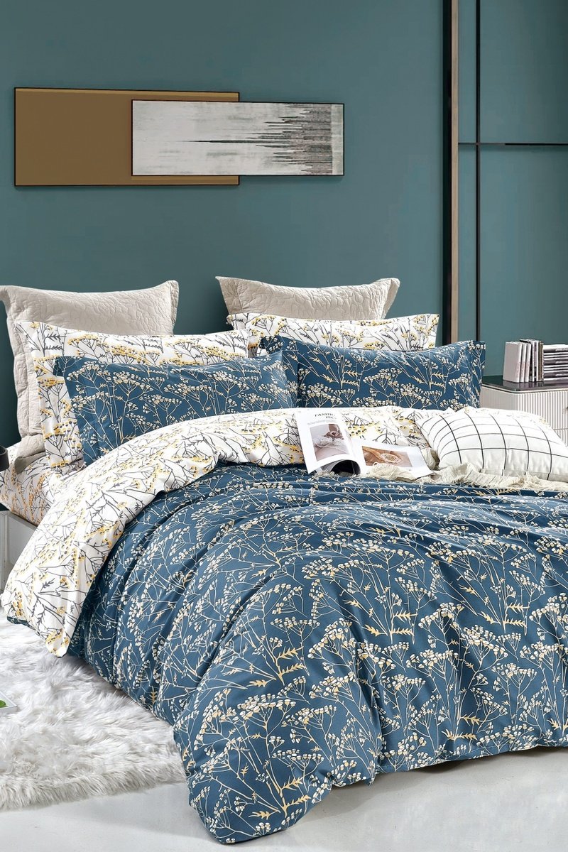 Parure de couette réversible en percale de coton 80 fils/cm² - Bleu et jaune