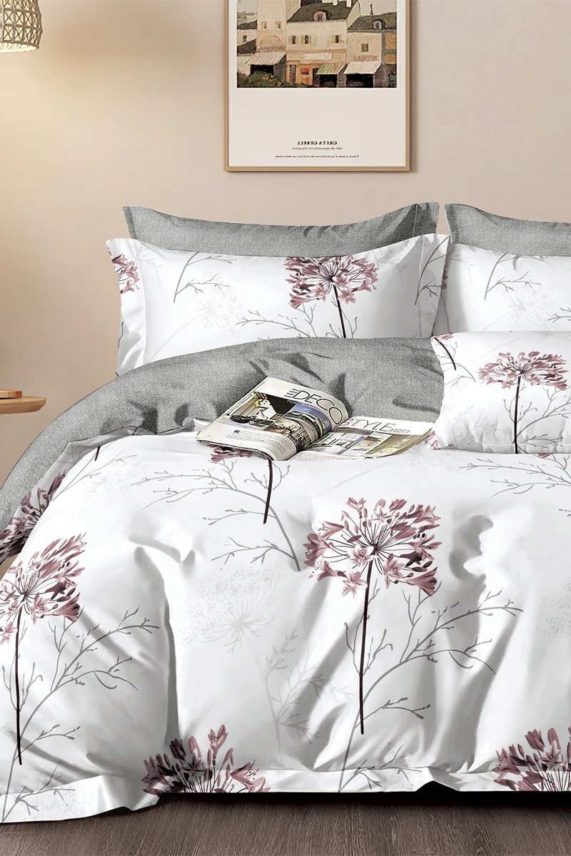 Parure de couette réversible en percale de coton 80 fils/cm² - Gris et blanc
